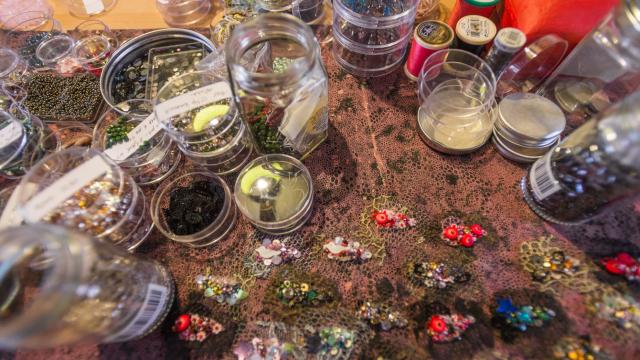 Embroidered tables and original jewelry
