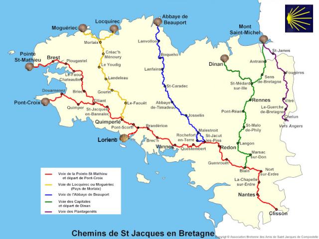 The Breton Association of Friends of St. James of Compostela has recognized, rehabilitated, and marked the paths of St. James in Brittany.