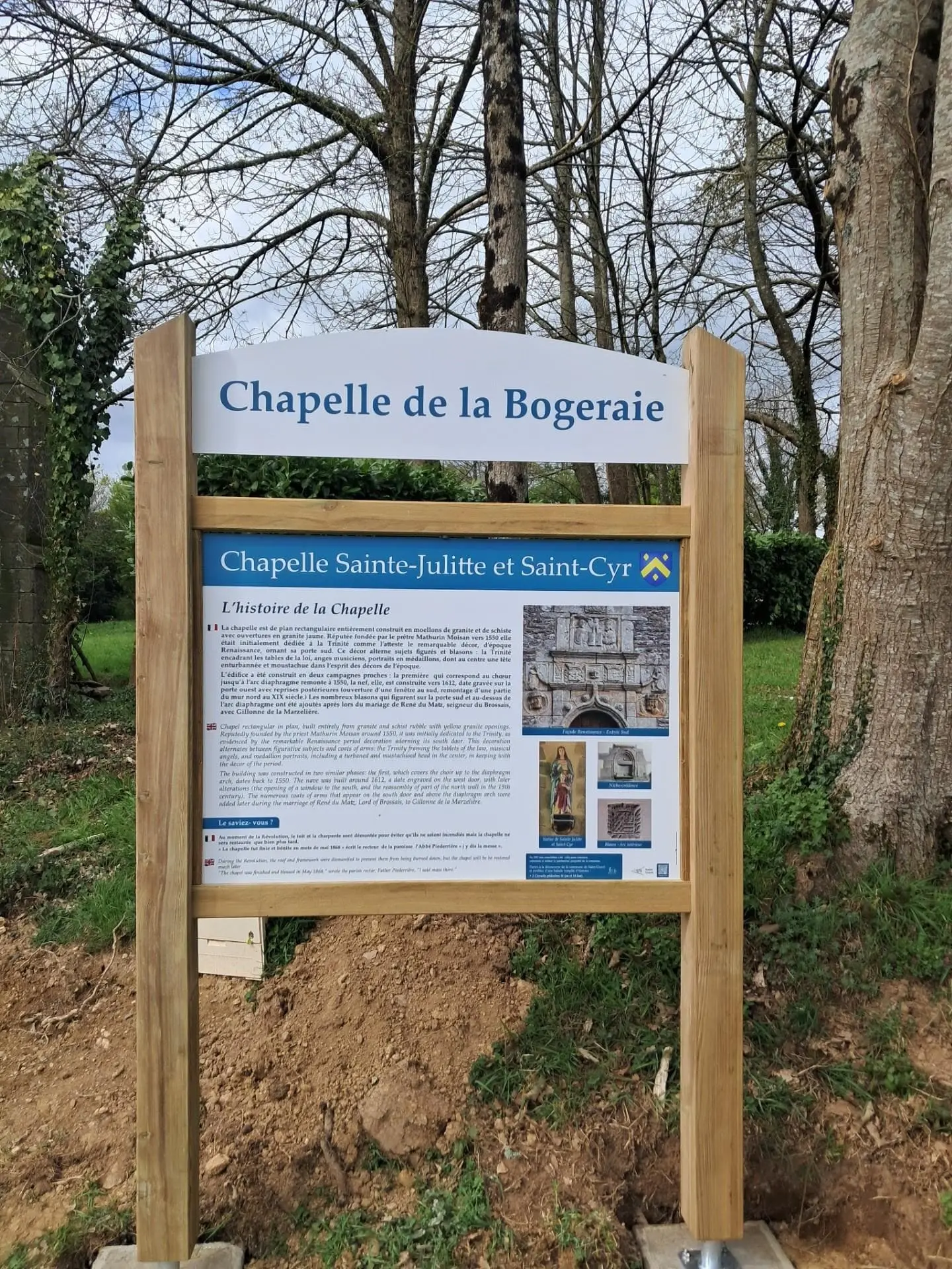 Since 1987, the Friends of the Bogeraie Chapel association has organized a country fair, the proceeds of which went towards restoring the village chapel. For nearly 40 years, numerous volunteers participated in the work to enhance the building and then the surrounding grounds. To inform visitors, the association commissioned an information panel about the chapel's history in 2025. A small team installed the panel last Wednesday, and it will be on display during the upcoming Pentecost celebration on May 24th. After the 11:00 am mass, a meal will be served under a tent. Reservations are required by May 12th and can be made by calling 06 19 93 51 75.
