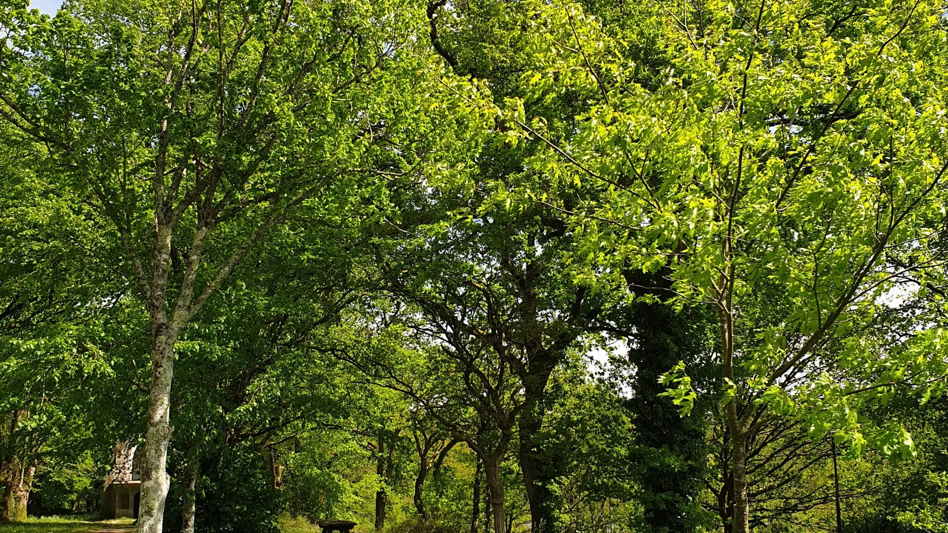 Wooded area - four tables - toilets at the entrance to the Place St Michel car park