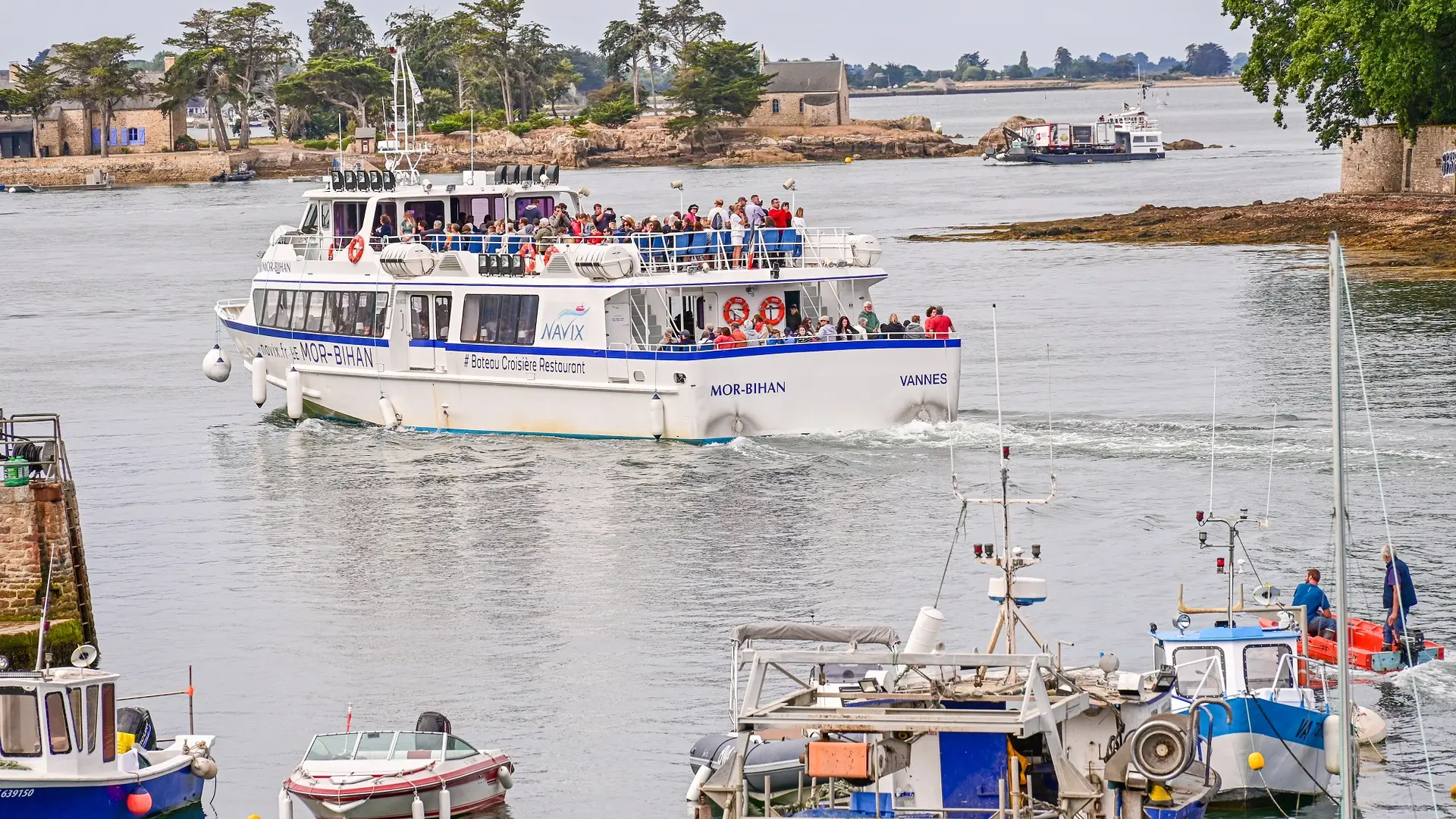 Treat yourself to a maritime escape! With our company, set sail for the islands (Belle-Ile en Mer, Houat, Hoëdic and Groix) or discover the Gulf of Morbihan (with or without a stopover at Ile aux Moines and Ile d'Arz) and the Ria d'Etel with our commentary cruises. Departures from the ports of Vannes, Port-Navalo, Locmariaquer, Auray, Le Bono, La Trinité-Sur-Mer, Etel, La Turballe and Le Croisic. You can also enjoy a lunch or dinner cruise aboard our restaurant ship, the "Mor Bihan". All year round, offer your loved ones an exceptional gift with our "Cheques Evasion". All information is available on our website. Tickets are available at the Questembert and Rochefort-en-Terre Tourist Office. Or book online by clicking on the "book" button.