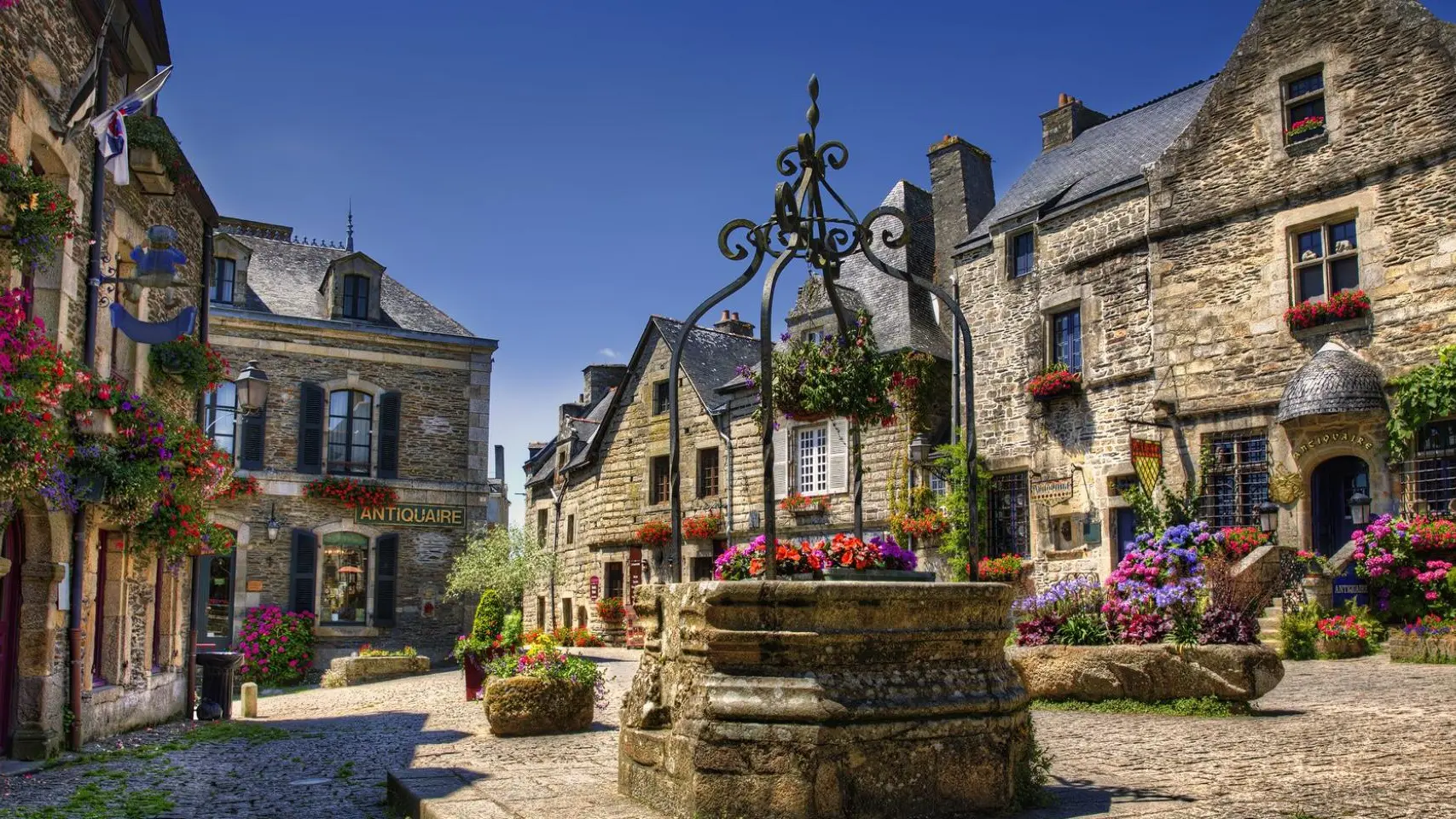 The houses around this square are dated from the 14th century to the 18th century. Note the scale carved above the door near the well: this building housed the seigneurial court.