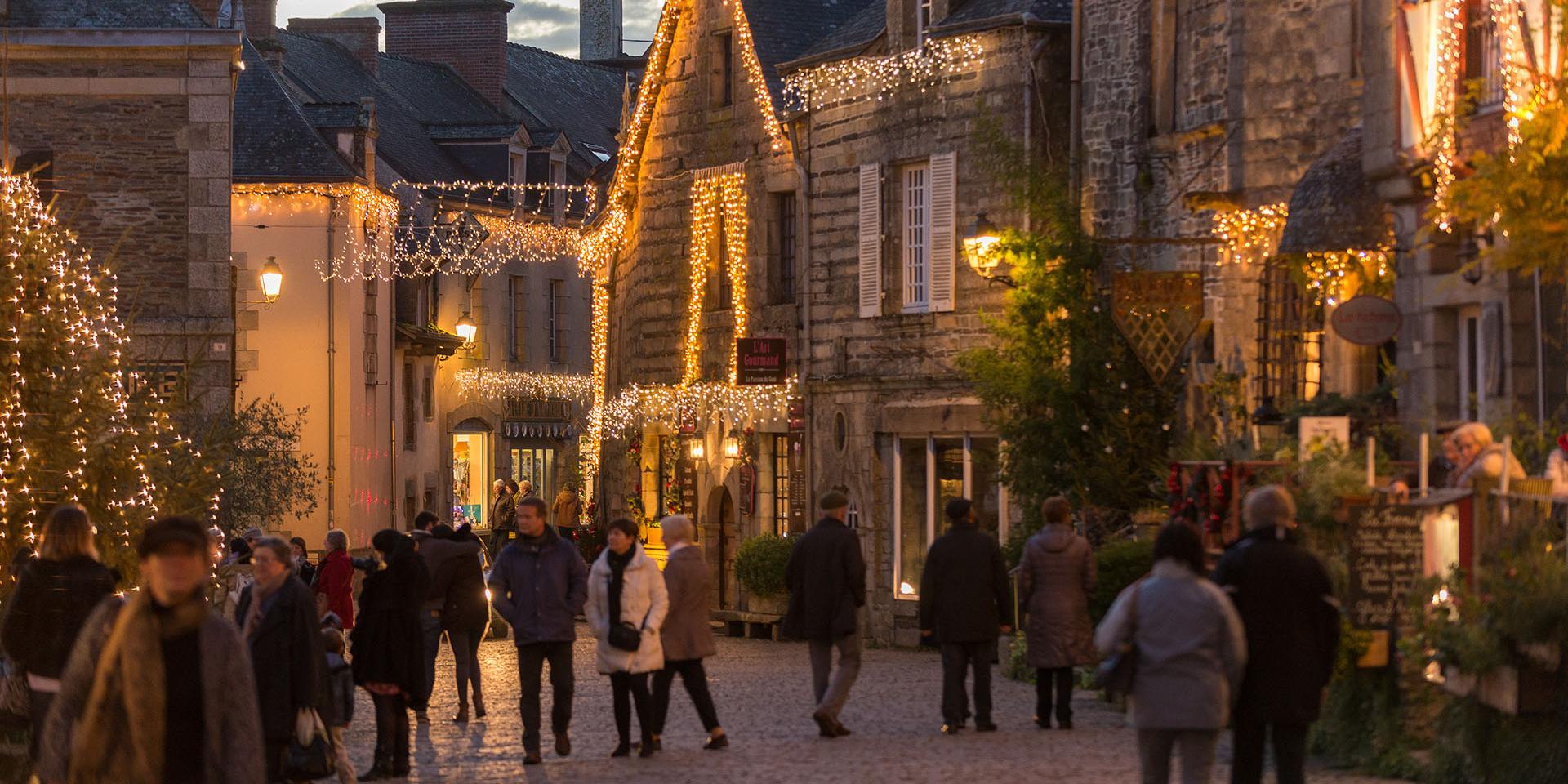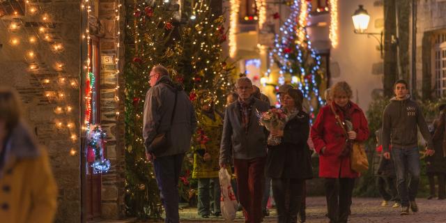 Our guides will take your group through the streets and alleys of the illuminated city. Every evening in December, the Little City of Character scintillates with a thousand lights thanks to the many garlands, stalactites and other curtains of light. Several kilometers of illuminations, 460,000 Led bulbs, give another view of the village’s rich heritage. In addition, the visit is done among the good smells of kouign-amann and hot wine! Craftsmen and the tourist office store are also present to give good gift ideas…