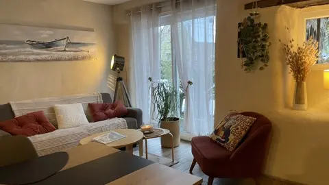 We wanted to renovate this family building with noble and natural materials such as hemp and clay to bring warmth and conviviality. Outside, the terrace overlooks an unfenced garden of maple oaks, where you will enjoy the small activities on offer (puck game, badminton, moolky, ping pong table, etc.), adjoining the owners you will have the advantage of having all the answers on the activities in the region. Arrivals are from 4 p.m. and departure days at 11 a.m. Ground floor: A main room with a fully equipped kitchen, toilets, a pellet stove where you can warm up on winter evenings comfortably installed in a comfortable sofa bed. You will access the first floor by a period stone staircase. Upstairs: Two charming furnished bedrooms, one with a 140 cm bed and the second equipped with two 90 cm beds that can be joined together, both equipped with a chest of drawers. A bathroom with walk-in shower and toilet. Outside: Outside you will have access to a pleasant terrace as well as to the spa area, the terrace is equipped with a barbecue and garden furniture where you will enjoy a green setting adorned with maple and birch trees. A tourist tax will be requested on site (per person per night), its amount varies depending on the type and classification of the accommodation. Inquire.