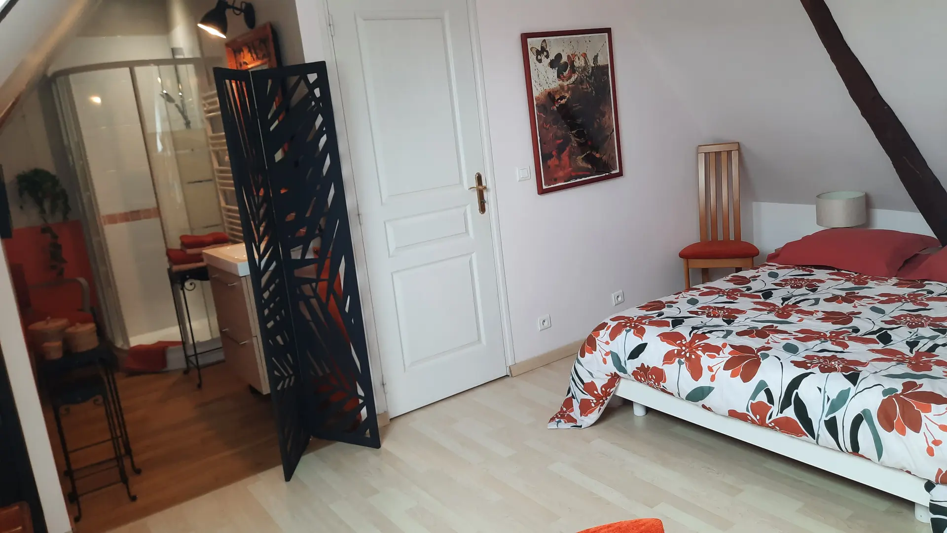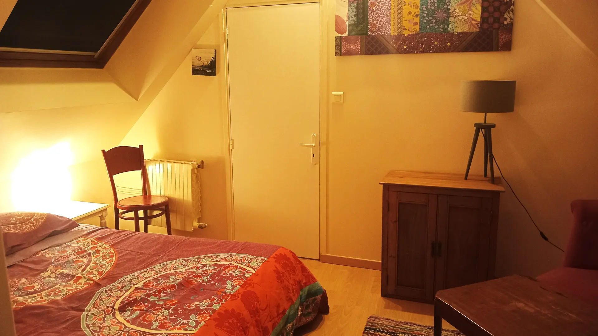 Quiet house with no vis-à-vis. 2 guest rooms, one of which has the possibility of connecting rooms, recently decorated, warm and neat. 1 bedroom of 24m² on the 1st floor, lounge area and office area, bed 160 x 200cm, private full bathroom 6m² with Italian shower and toilet. Possibility of small connecting room of 10m² with bed 140x190cm (shared bathroom, supplement 60 € per night). 1 other bedroom of 15m² on the 2nd floor, bed 140 x 190 cm, office area, private full bathroom 4.5m² with corner shower, and separate toilet. Independent entrance. Full breakfasts with homemade and / or local products. Possibility of occasional table d'hôte by reservation. No TV in the bedrooms but you can use the one in the dining room for a break from the zen... Food store with wood-fired bakery, artisanal butcher/delicatessen + Pub l'Hermine 2 minutes' walk away. Organic farm at the edge of the village. 2 night minimum. Free Wi-Fi access. No smoking inside. No pets. Those allergic to cats, please refrain... Pounette and Zouzou reign supreme! A charming base for discovering the region's treasures: the medieval houses of Malestroit, bike rides and fishing spots on the Oust and the Nantes-Brest Canal, Lizio and the Poète Ferrailleur, Paimpont and the Brocéliande forest, Josselin Castle, the artisans of Rochefort en Terre and La Gacilly, multiple flea markets, and of course only 20 minutes away by expressway. Vannes and the Gulf of Morbihan, Auray, Carnac, Quiberon... Nantes Airport 1 hour 15 minutes away, Rennes TGV 1 hour away, Vannes TGV 25 minutes away, Ploërmel 15 minutes away.